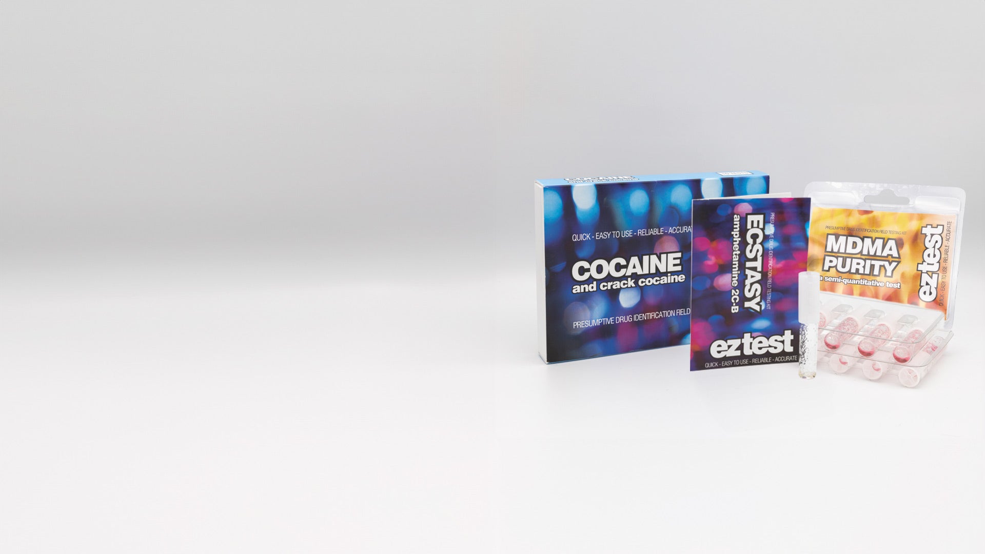 We have kits that test for presence of substances, and others for purity. No more trusting unregulated supply chains. Let EZ Test help you establish the quality of your drugs.